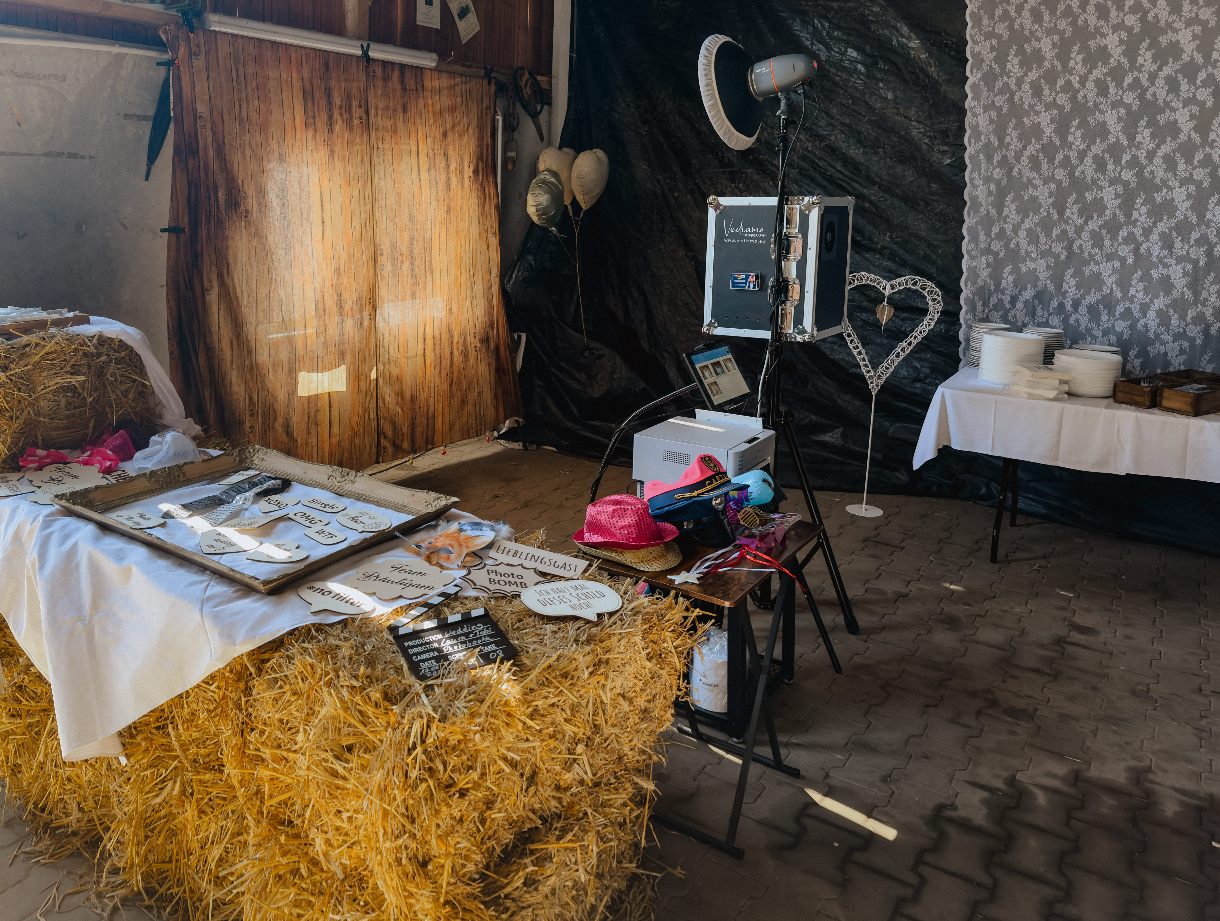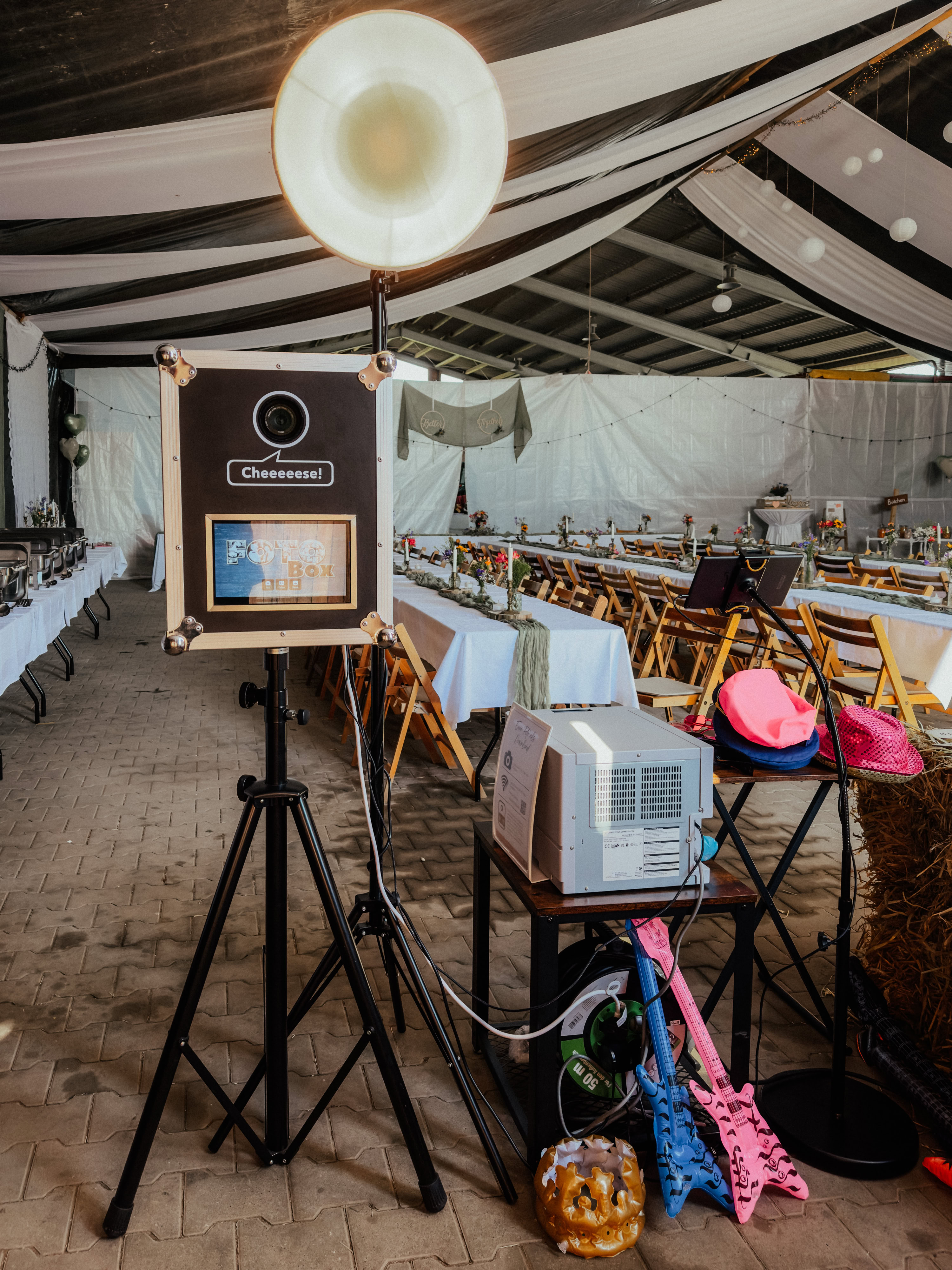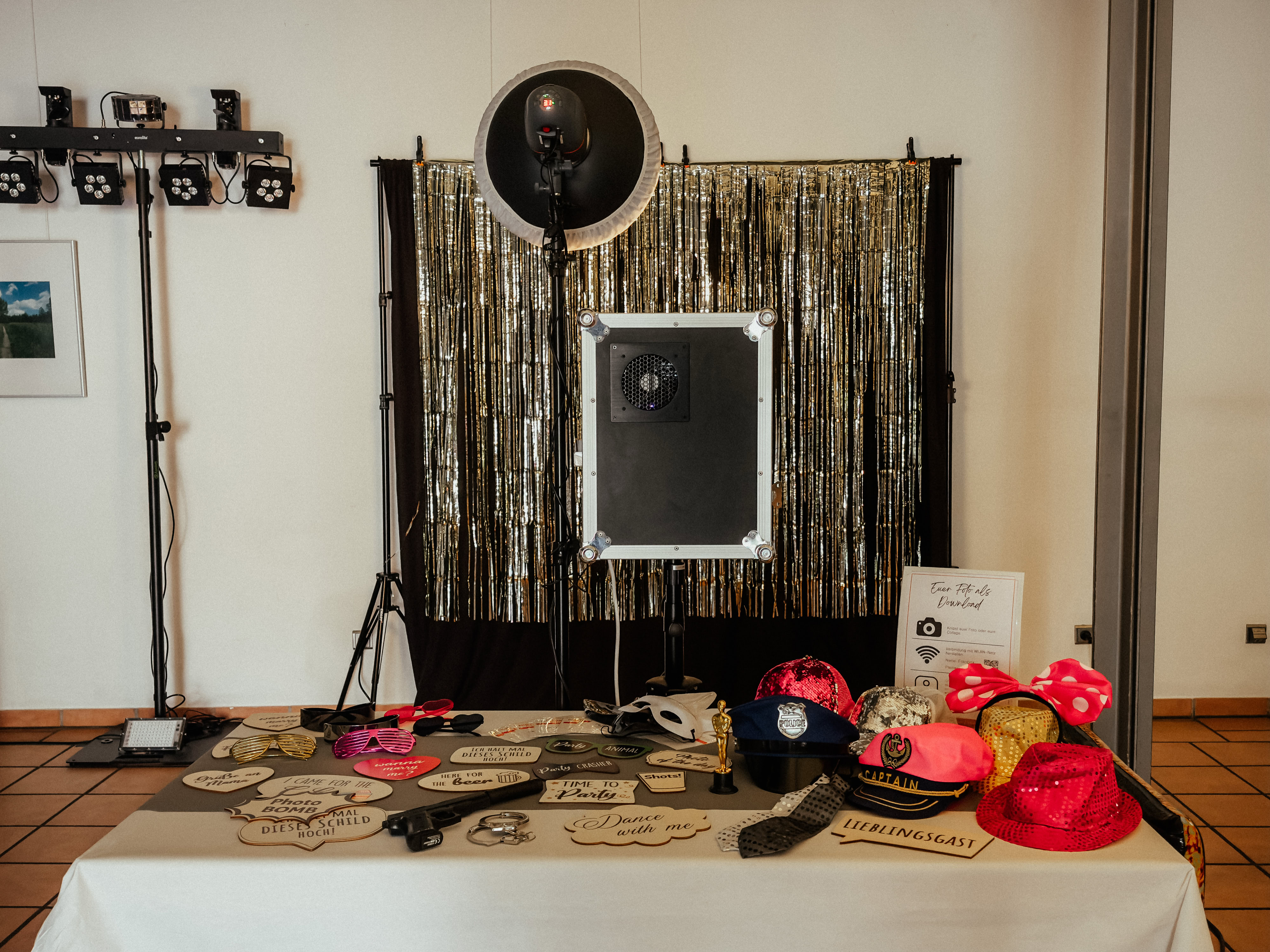 Inklusive einer Fotobox mit professionellen Equipment und Drucker.