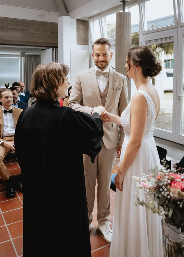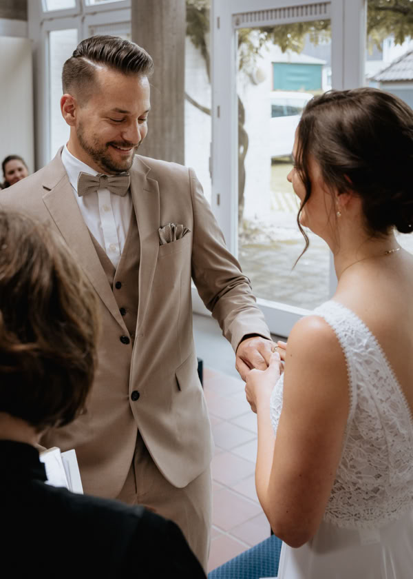 Josi sah in ihrem weißen Kleid bezaubernd aus, strahlend vor Glück und voller Vorfreude auf die gemeinsame Zukunft mit Daniel. Dieser wiederum konnte seinen Blick kaum von seiner schönen Braut abwenden, so glücklich und stolz war er, sie zur Frau nehmen zu können. Die Liebe, die zwischen den beiden spürbar war, verlieh der Zeremonie eine ganz besondere Atmosphäre.