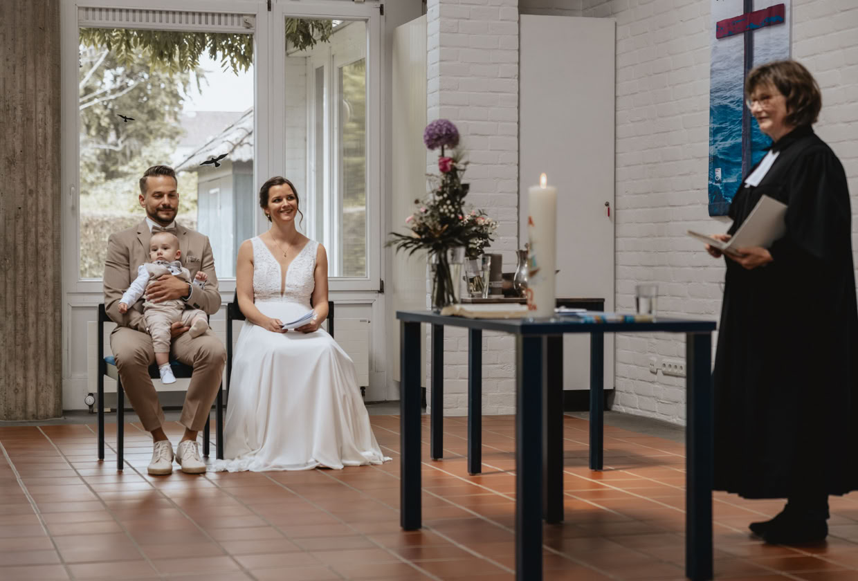 Es war ein strahlend schöner Sommertag, als Josi und Daniel sich kirchlich das Ja-Wort gaben und ihren Sohn gleichzeitig in der Kirche taufen ließen. Die Veranstaltung, die von ihren Lieben liebevoll als "Traufe" bezeichnet wurde, war ein schöner Höhepunkt des Jahres 2024. Die Kirche war bis auf den letzten Platz gefüllt, als das traumhafte Paar vor den Altar trat.