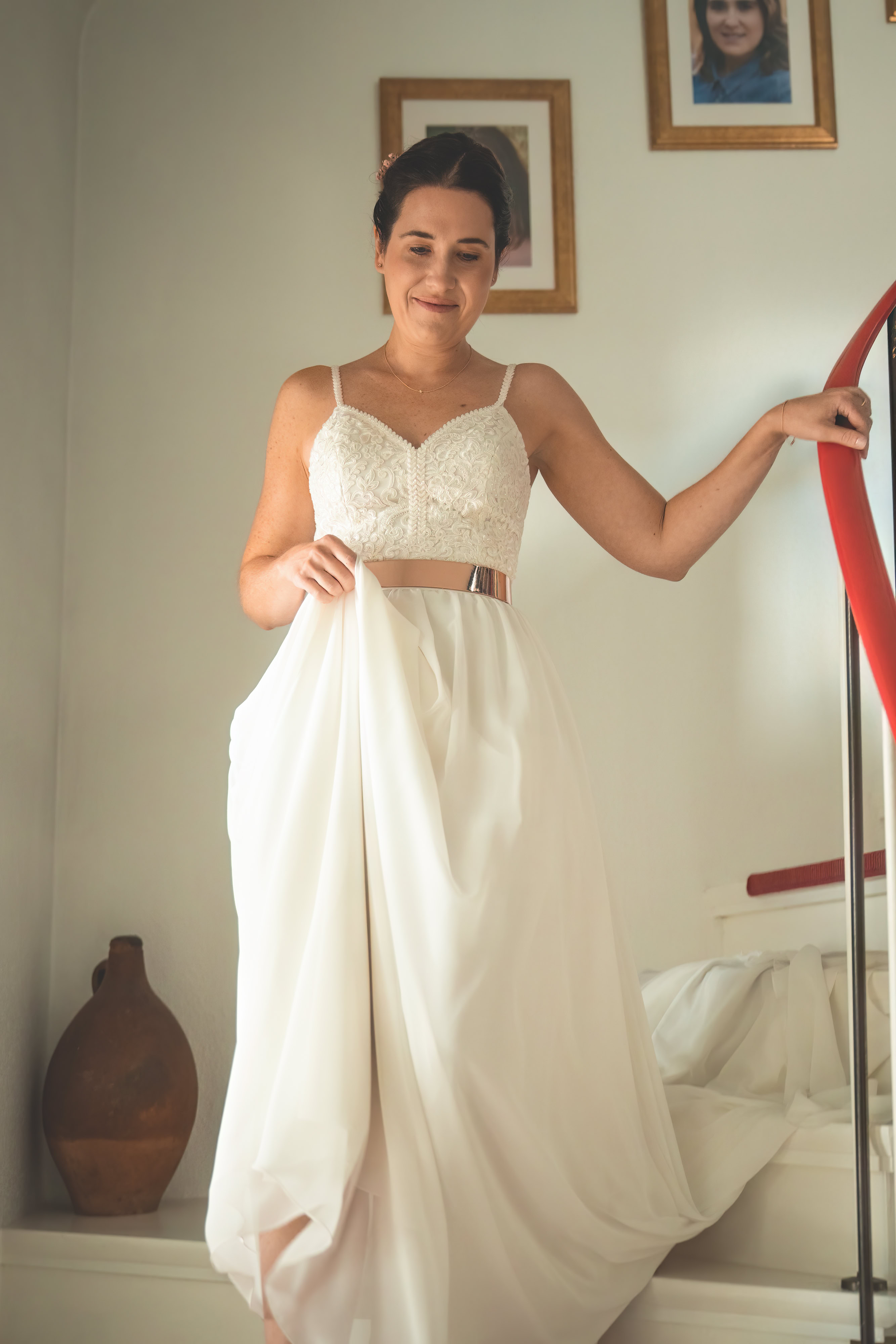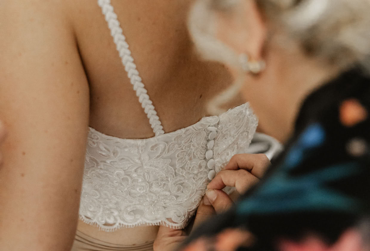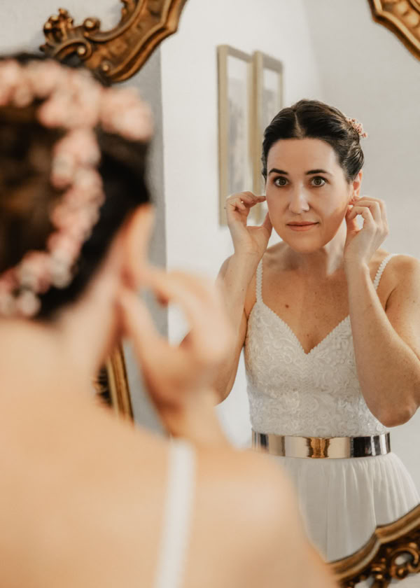 Ich durfte Katharina bei ihrem Getting-Ready begleiten, als sie sich auf ihren großen Tag vorbereitete. Es war eine emotionale Zeit, als ihre Familie sie unterstützte und ihre beste Freundin Beatrice ihr in ihr traumhaftes Brautkleid half. Ich konnte die freudige Aufregung förmlich spüren, als Katharina die Treppe hinab schritt und alle im Hausflur auf sie warteten, um den ersten Blick auf die strahlende Braut zu erhaschen.