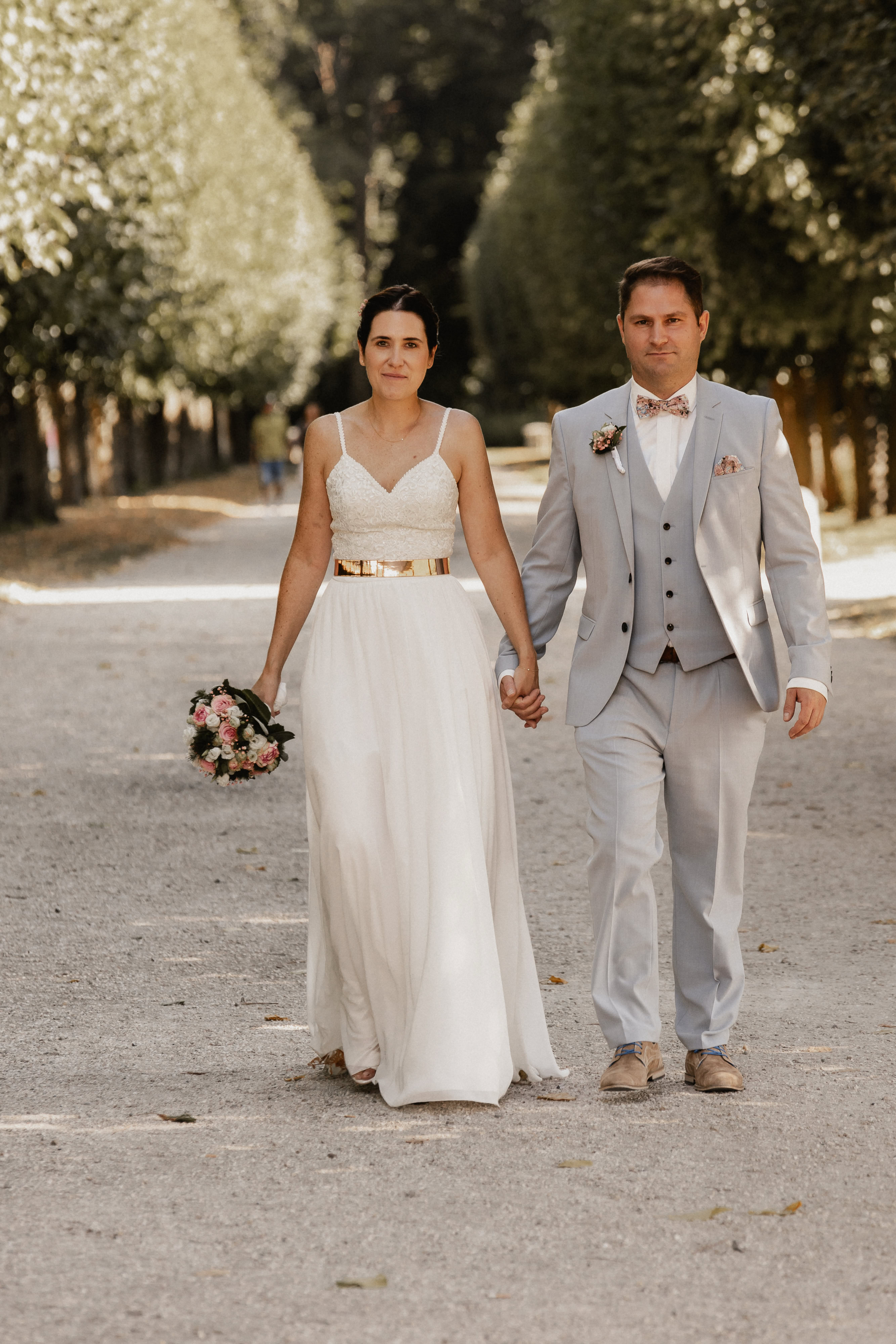 Die Trauzeremonie verlief reibungslos, und am Ende konnten sich Katharina und Boris doch noch die Ringe anstecken. Die Sonne schien heller, als das frisch vermählte Paar sich einander versprach. Boris wartete mit einem zauberhaften Oldtimer auf Katharina, und sie fuhren gemeinsam zur Eventlocation in Erftstadt, begleitet von strahlendem Sonnenschein.