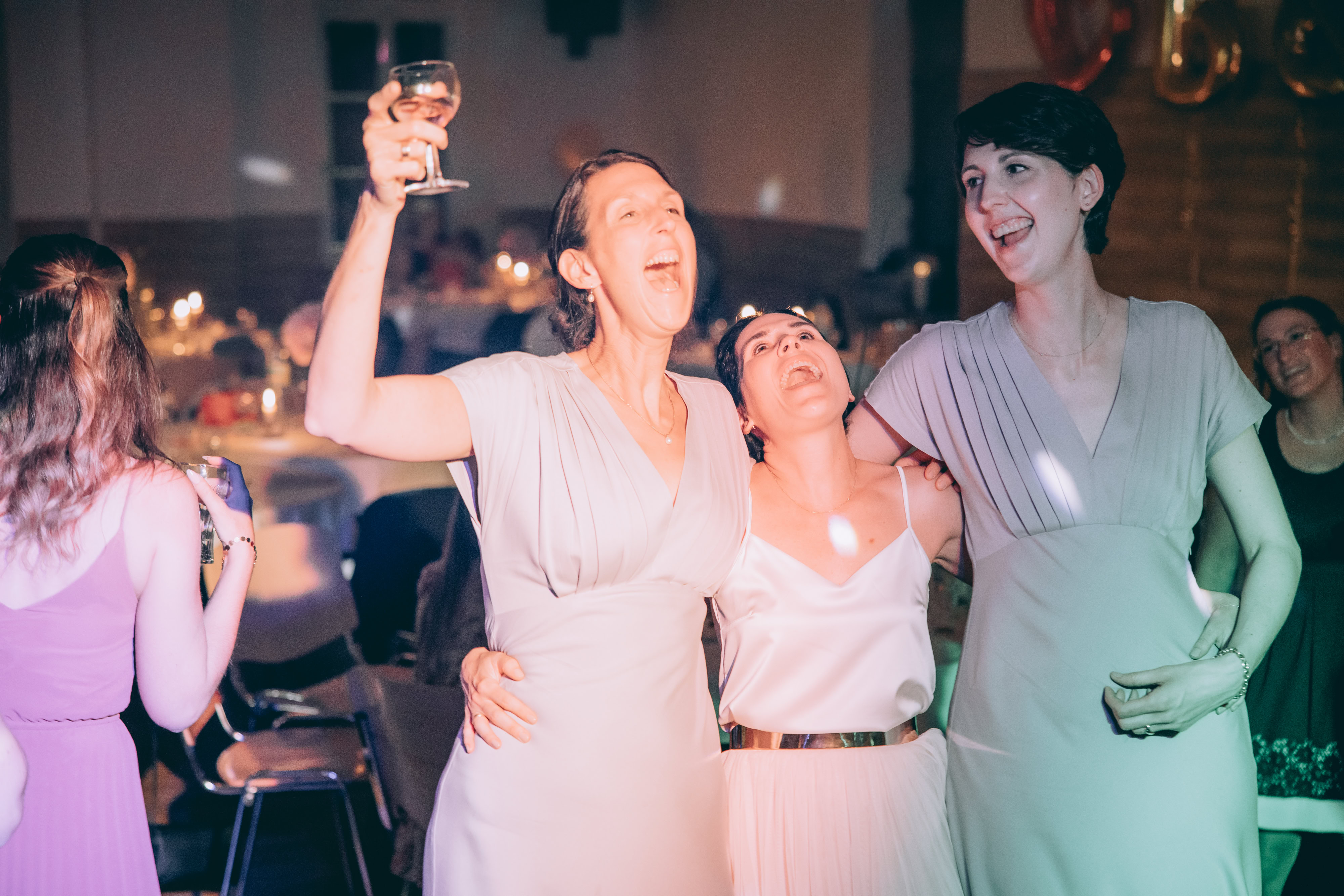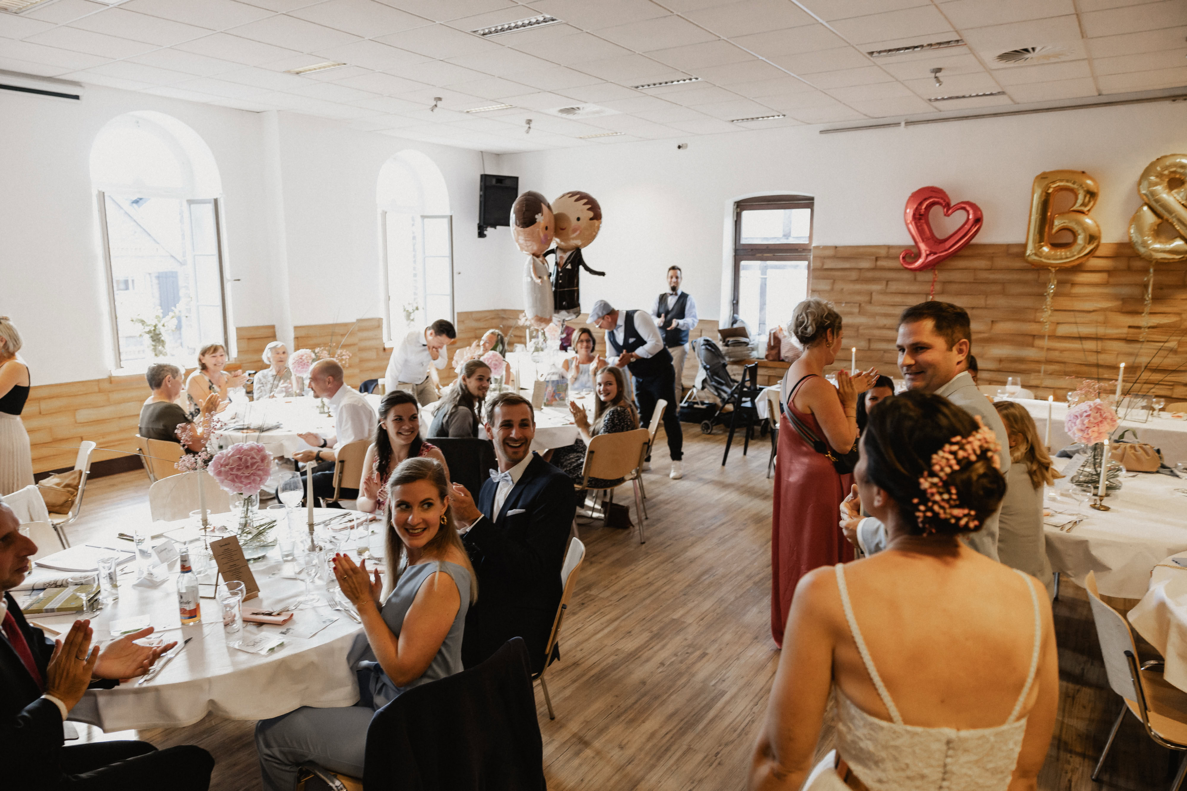 Als sie die Location betraten, wurden sie von ihren strahlenden Gästen empfangen, die voller Freude waren, das glückliche Paar zu feiern. Die Stimmung war ausgelassen, die Liebe spürbar und die Freude unbeschreiblich. Es war eine Ehre für mich, als Hochzeitsfotograf die Liebe und die einzigartigen Momente dieses besonderen Tages festzuhalten.