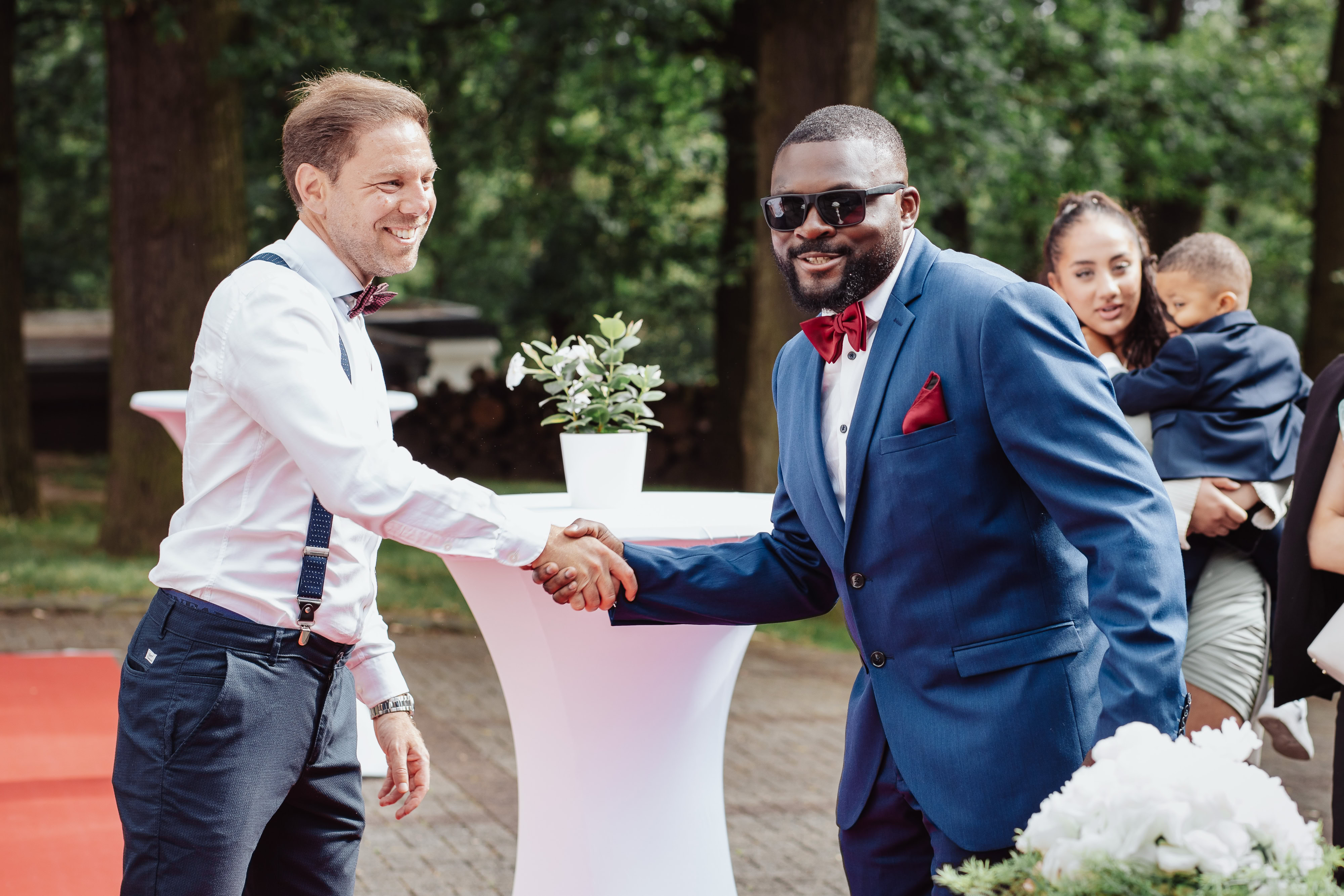 Anschließend lud das Brautpaar ihre Gäste in die Villa Sophienhöhe ein, wo bei strahlendem Wetter ein festlicher Sektempfang und eine ausgelassene Party stattfanden. Die Gäste überreichten ihre Glückwünsche und Geschenke, während ich die einzigartigen Momente und Emotionen des Tages festhielt, die später die Grundlage für eine unvergessliche Reportage bildeten.