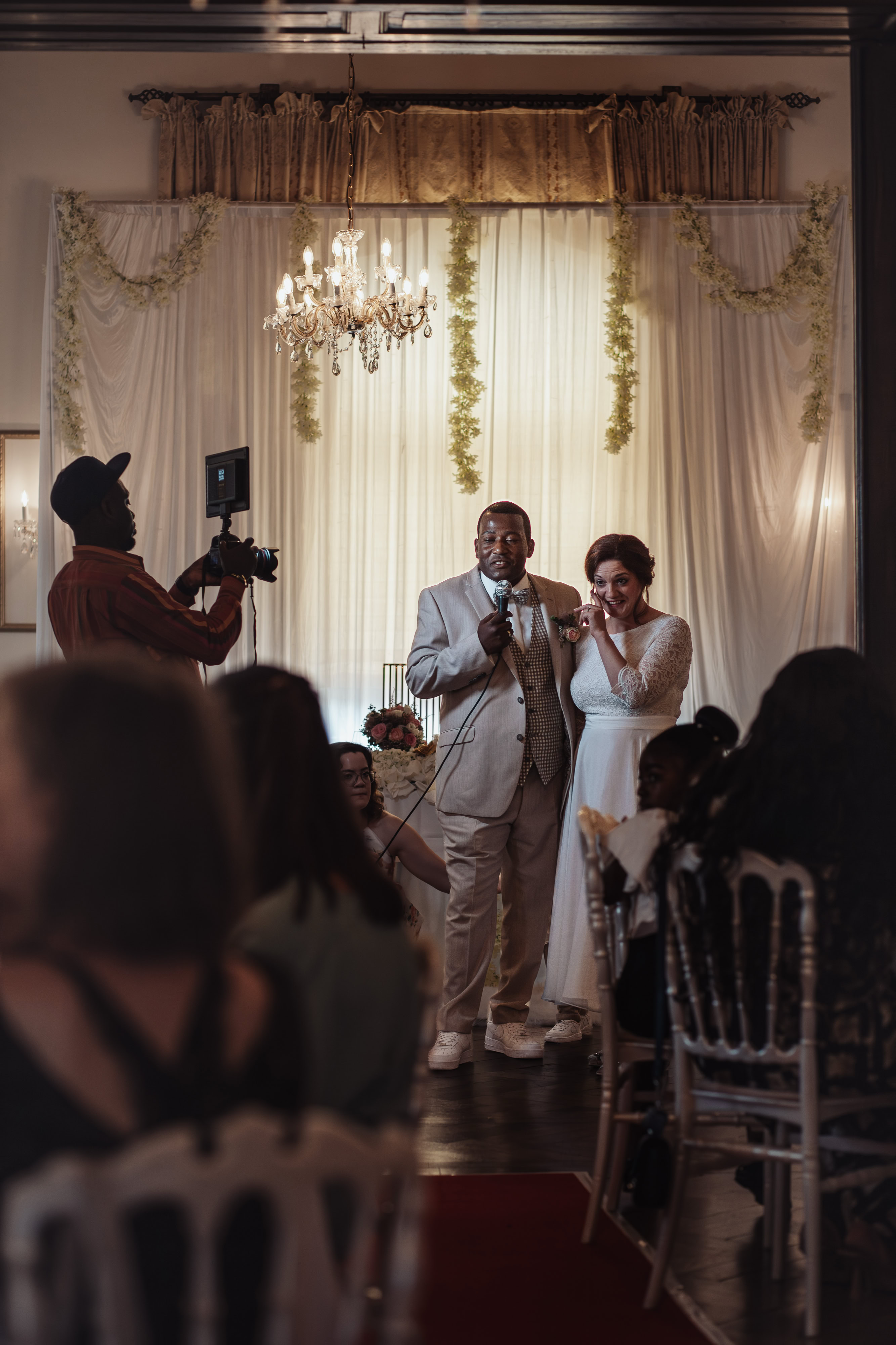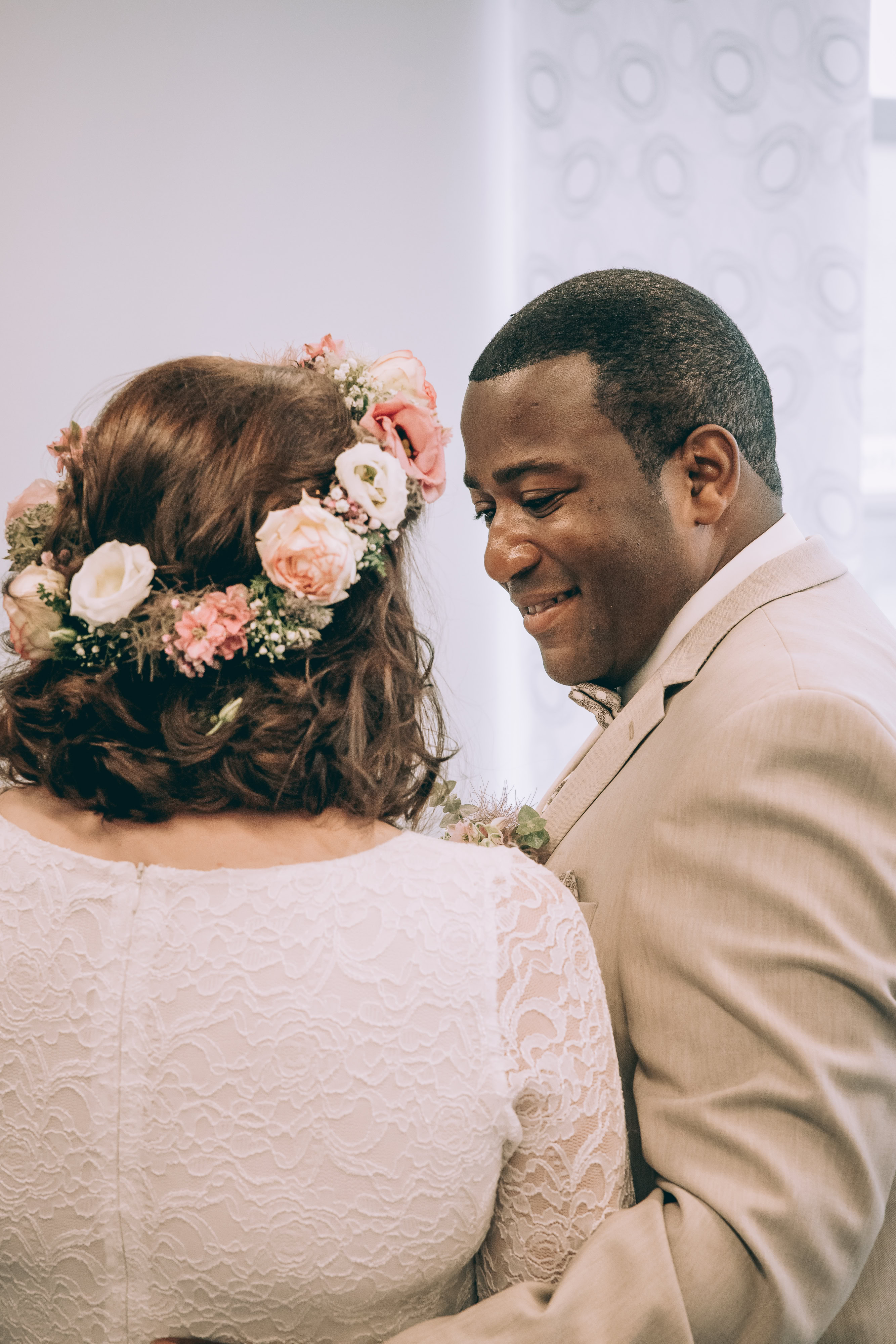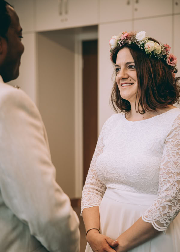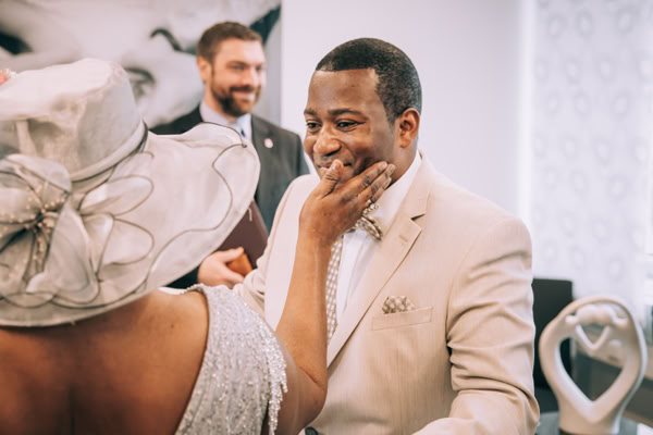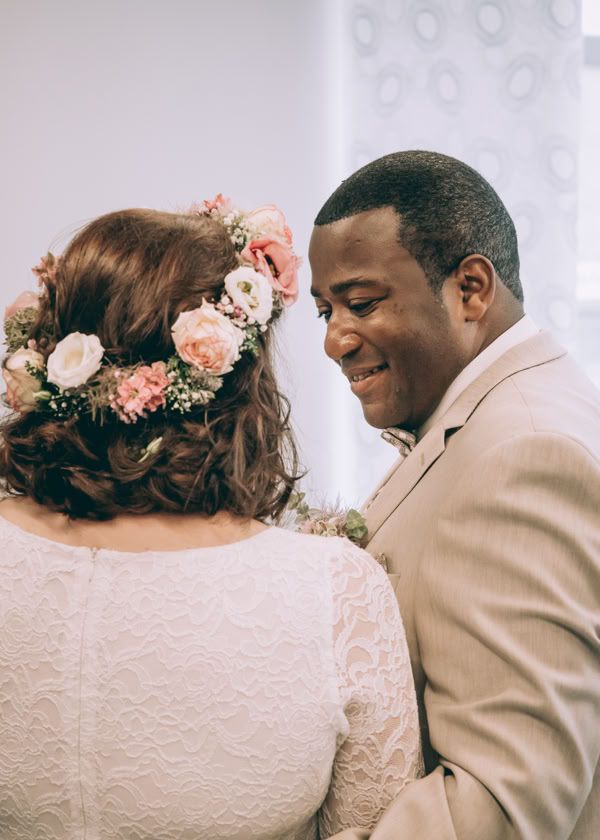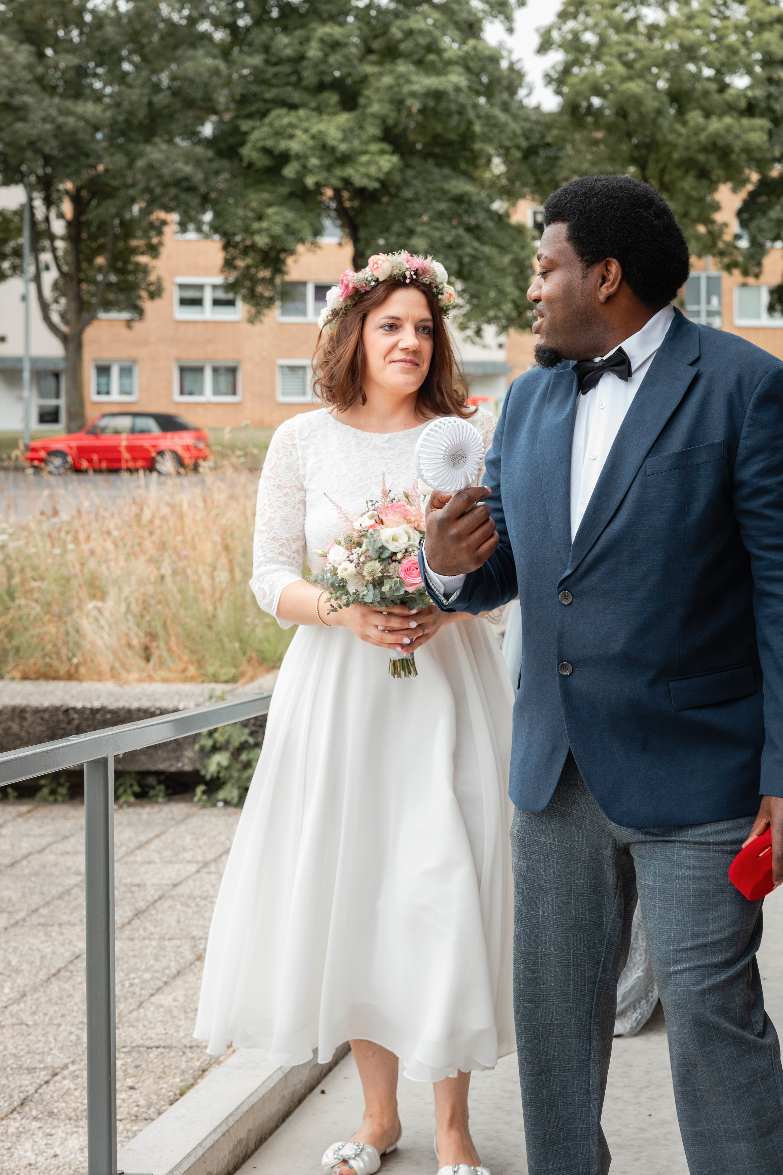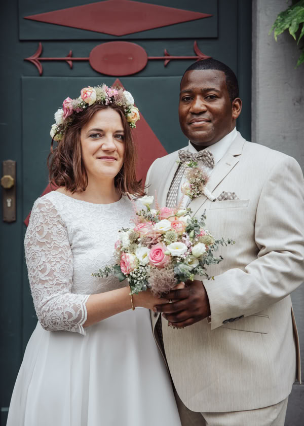 Die Hochzeitszeremonie fand im Standesamt Bedburg statt, wo Dombel bereits im Trauzimmer auf seine bezaubernde Braut Michele wartete. Begleitet von Dombels Mutter und unter den sehnsüchtigen Blicken der Gäste betrat Michele den Raum, und der Moment der Vereinigung zweier Menschen voller Liebe und Freude wurde festgehalten.