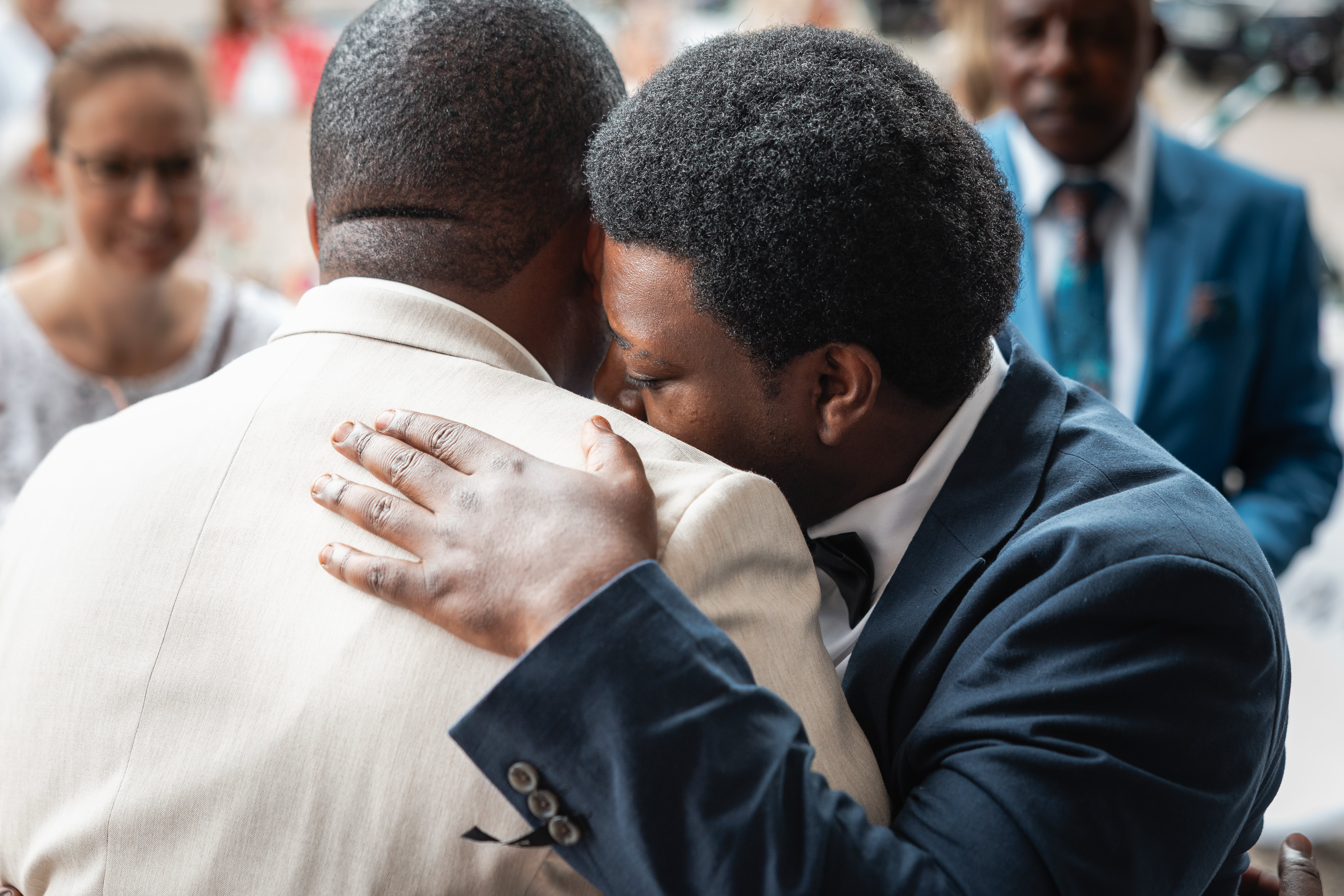 Der Nachmittag wurde mit einem köstlichen Grillbuffet, dem traditionellen Hochzeitstanz und dem romantischen Anschneiden der Torte gekrönt. Als Fotograf war es mir eine Freude, diesen besonderen Tag mit Michele und Dombel zu teilen, und ich konnte sie nach vier Wochen mit ihren wunderschönen Erinnerungen und individuell gestalteten Dankeskarten für ihre Gäste glücklich machen. Mit einem zufriedenen Herzen machte ich mich am Ende des Tages auf den Heimweg, dankbar für das Vertrauen, das mir entgegengebracht wurde, und erfüllt von den unvergesslichen Momenten, die ich miterleben durfte.